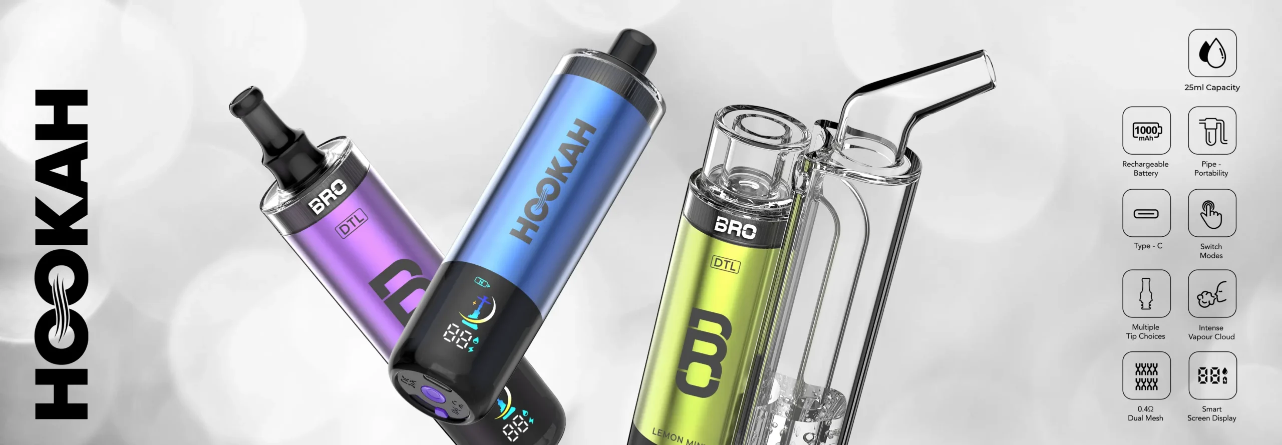 The smart screen display keeps you informed with real-time battery and e-liquid levels, ensuring you’re always in control of your vaping experience. Whether you’re enjoying it solo or turning it into a hookah experience, Bro Vapes delivers pure performance and unforgettable flavour.